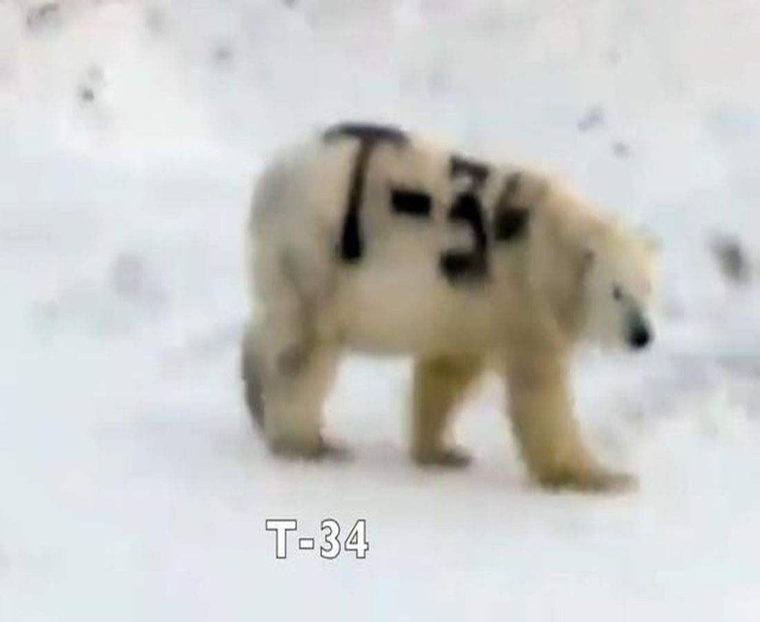 俄罗斯有一只北极熊被拍到身上遭人喷上“T-34”字样,专家担心,因为身上有显著标记,可能导致这头北极熊无法隐匿行踪,抓不到猎物而饿死。