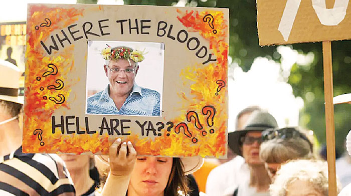 澳洲山火肆虐,莫里森竟带全家出国度假,愤怒的民众手持标语牌,到其家门前抗议。