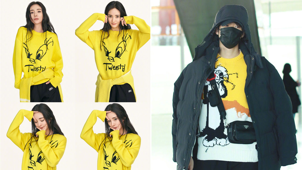 杨幂接服饰代言,魏大勋机场穿同品牌同色上衣引发联想。