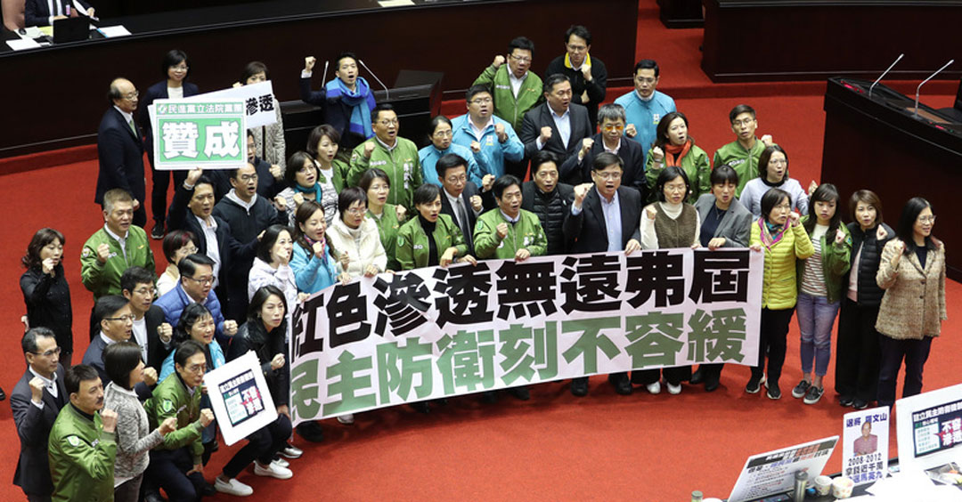 台湾立法院周二经过近5小时表决,三读通过《反渗透法》,明定任何人不得接受渗透来源指示、委托或资助等,否则可被判囚及罚款。多个政党表示反对,亦有团体到立法院门外抗议;国民党、亲民党的党团代表称,该法通过后两党将随即在数天内提出释宪申请。
