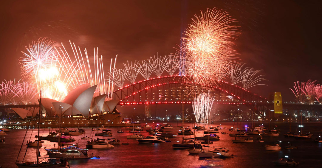 尽管面对林火肆虐,悉尼仍在跨年派对燃放烟花,迎接2020年的到来。璀璨的烟花在悉尼海港水面、歌剧院建筑顶端以及海港大桥上空绽放。
