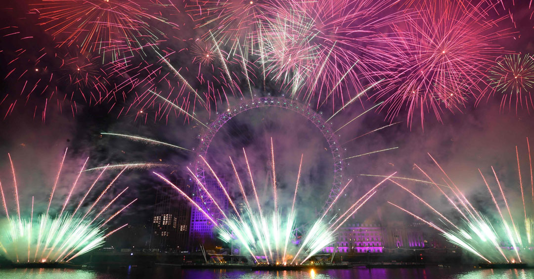 英国伦敦在大马时间周三上午8时迎接2020年,伦敦泰晤士河畔大笨钟与“伦敦之眼”摩天轮发射1万2000发烟火。