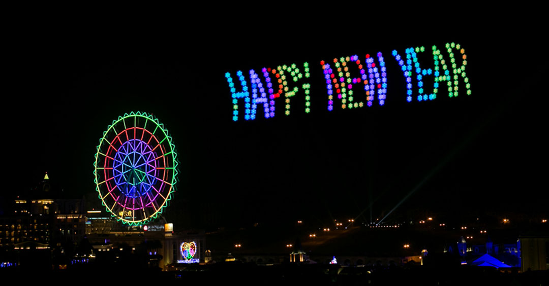 在高雄义大世界2020跨年活动,场面壮观更有看头,主办单位出动400台无人机结合999秒烟火秀,烟花绽放、炫丽夺目,是场浪漫的跨年夜。