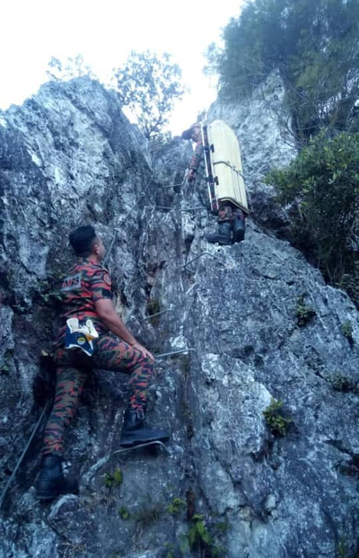 基于天色已暗,山路难行,不过,当局于晚上10时35分,终把死者遗体抬下山,复交给警方处理。