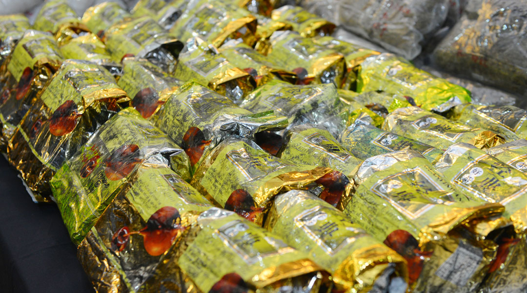武吉阿曼警察总部肃毒组总监拿督南利丁于周二在槟州警察总部召开记者会时指出,“警方起获的毒品可供100万人食用,除了提供本地市场外,也不排除这批毒品运出领国售卖。”